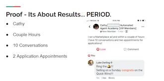 Automated Agent Academy is the 1st Hybrid Program program with a Done-For-You service element (Qualification, Conversion, Pre-Approval Booking and Automated 1003's), live training, Online Course and a community of professionals and support team.
